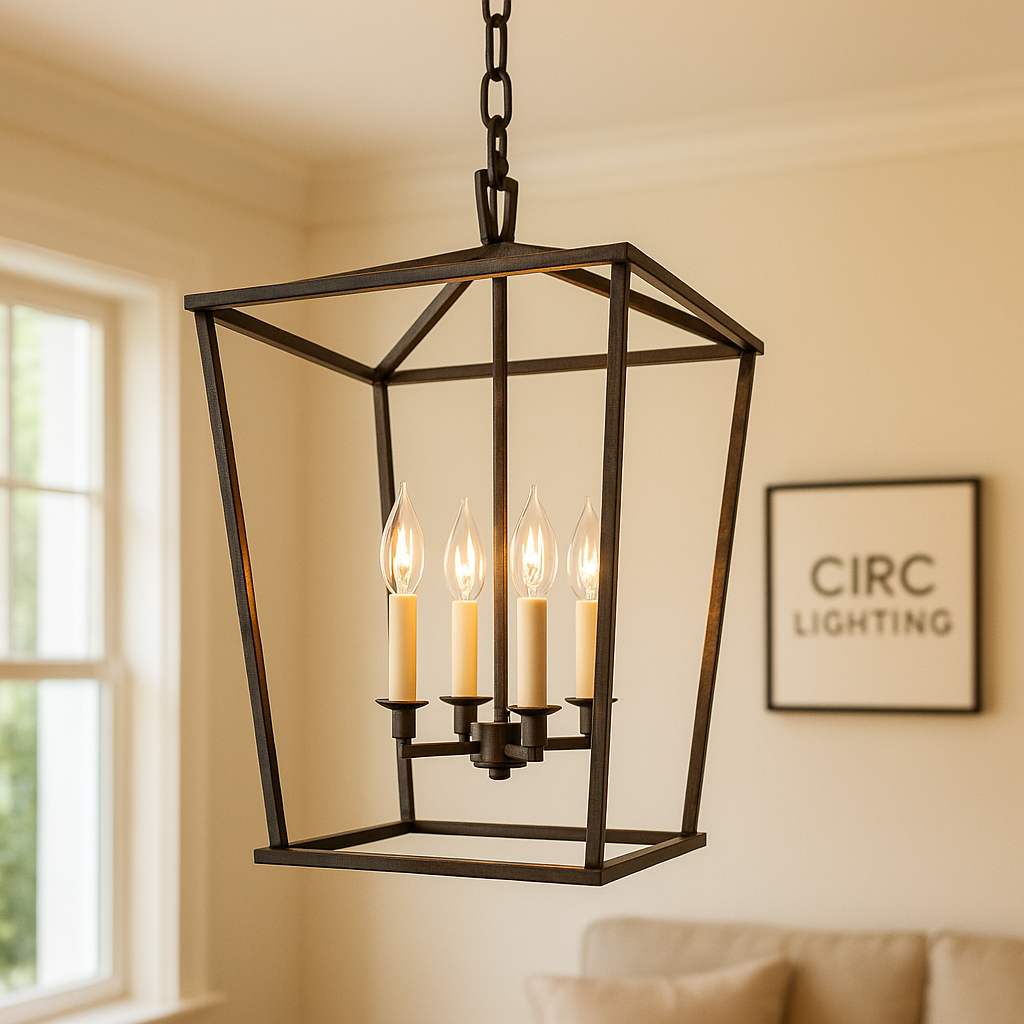 A majestic and historically inspired Vintage Luxury Lighting Fixture, the CIRC 19th C. English Openwork Pendant recreates the look of a classic 19th-century lantern. It features a robust steel-tube construction with distinctive flared open sides and a stirrup-form open hook top. The open design fully reveals the interior multi-arm chandelier, which holds candlestick-style sockets with bobeches and comes with ivory candle sleeves. Hung by chain, this pendant serves as a dramatic architectural centerpiece for refined, dry interior spaces.