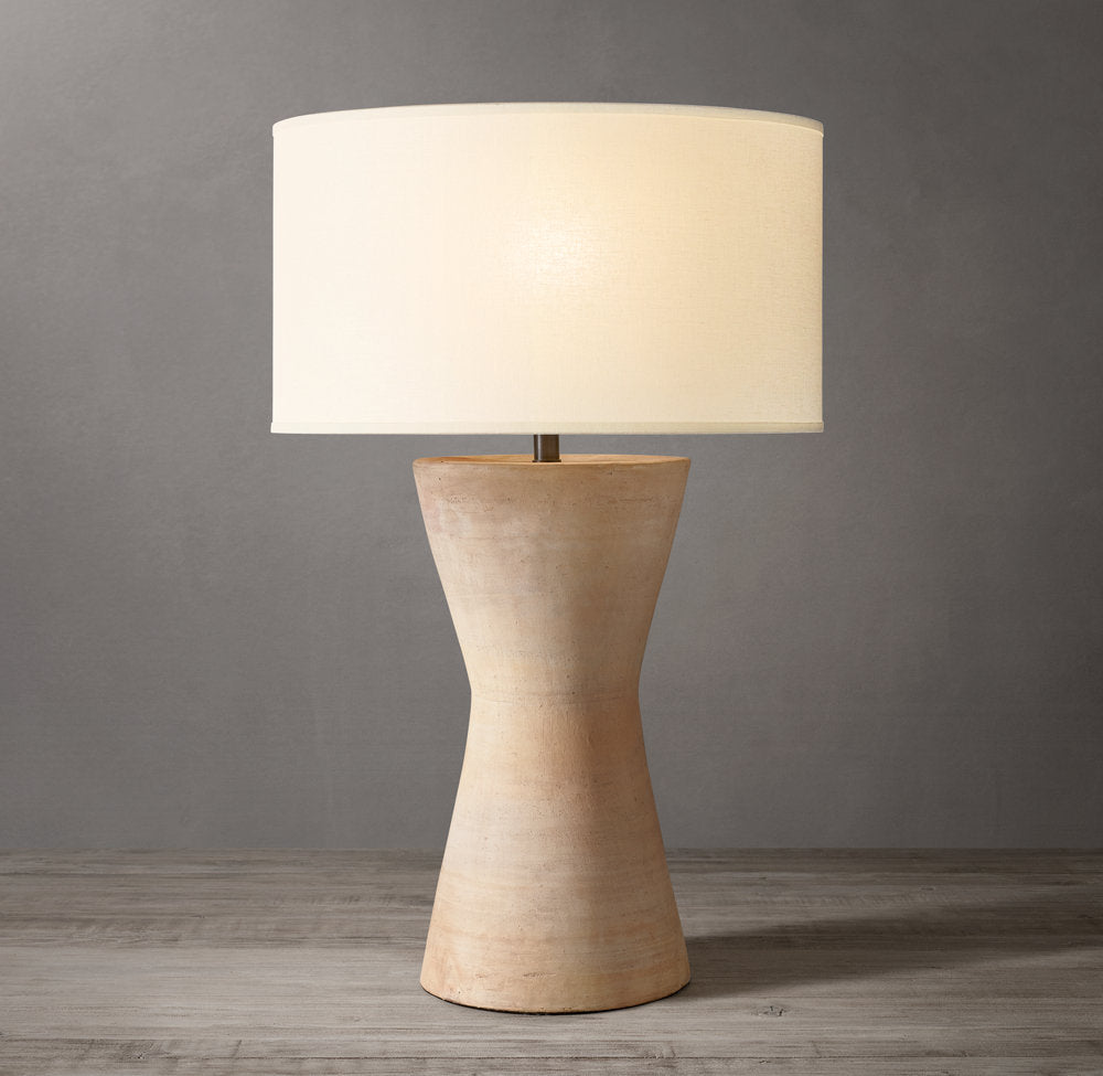 The Anja Hourglass Table Lamp embodies timeless craftsmanship and organic charm. Handcrafted from terracotta and finished by hand, it showcases a sculptural hourglass silhouette with a naturally aged, weathered patina — making each piece one of a kind.
