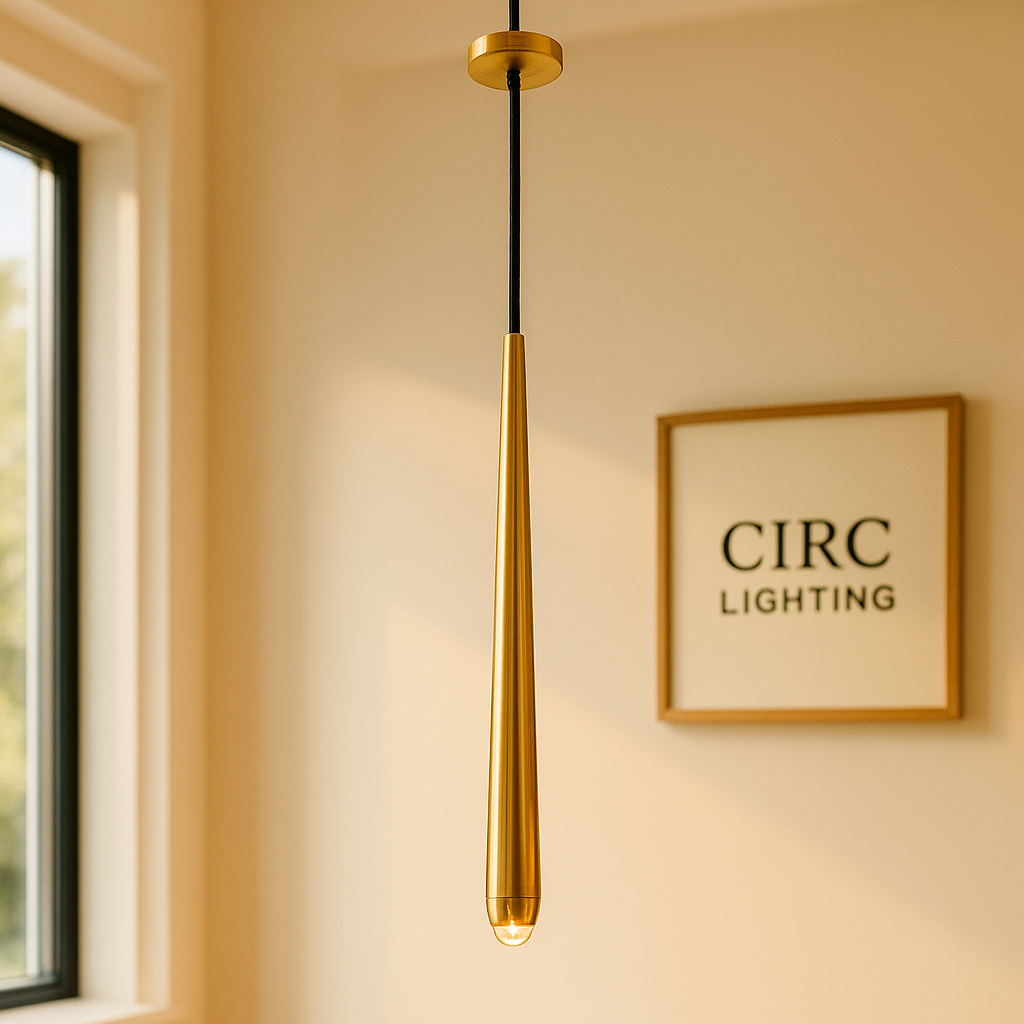 A sleek, minimalist, and exceptionally functional Vintage Luxury Lighting Fixture, the CIRC Aquitaine Pendant is designed to provide focused, modern illumination from a slim vertical form. The entire fixture is expertly crafted of solid brass, offering a premium feel and durable construction. It is equipped with an integrated LED module, delivering warm, energy-efficient light. The Bronze finish is a live finish designed to develop a natural patina over time. Due to its Damp UL certification, this hardwired pendant is an ideal choice for high-end bathrooms or sheltered outdoor areas.