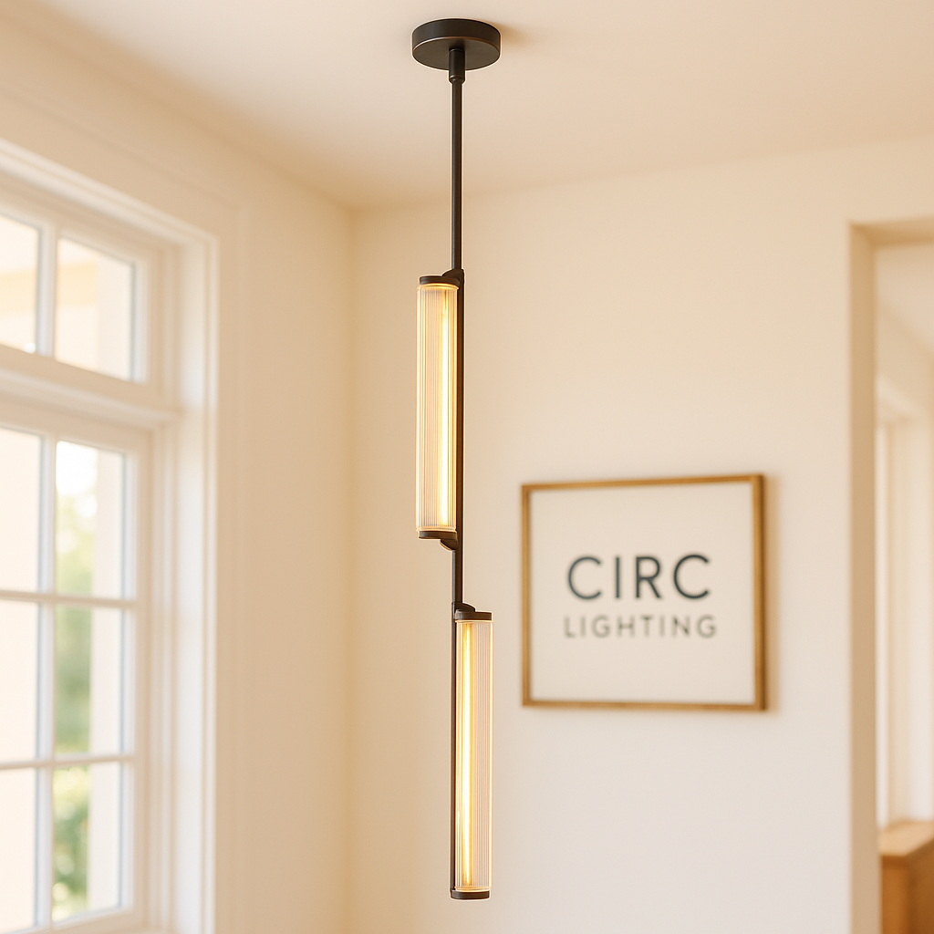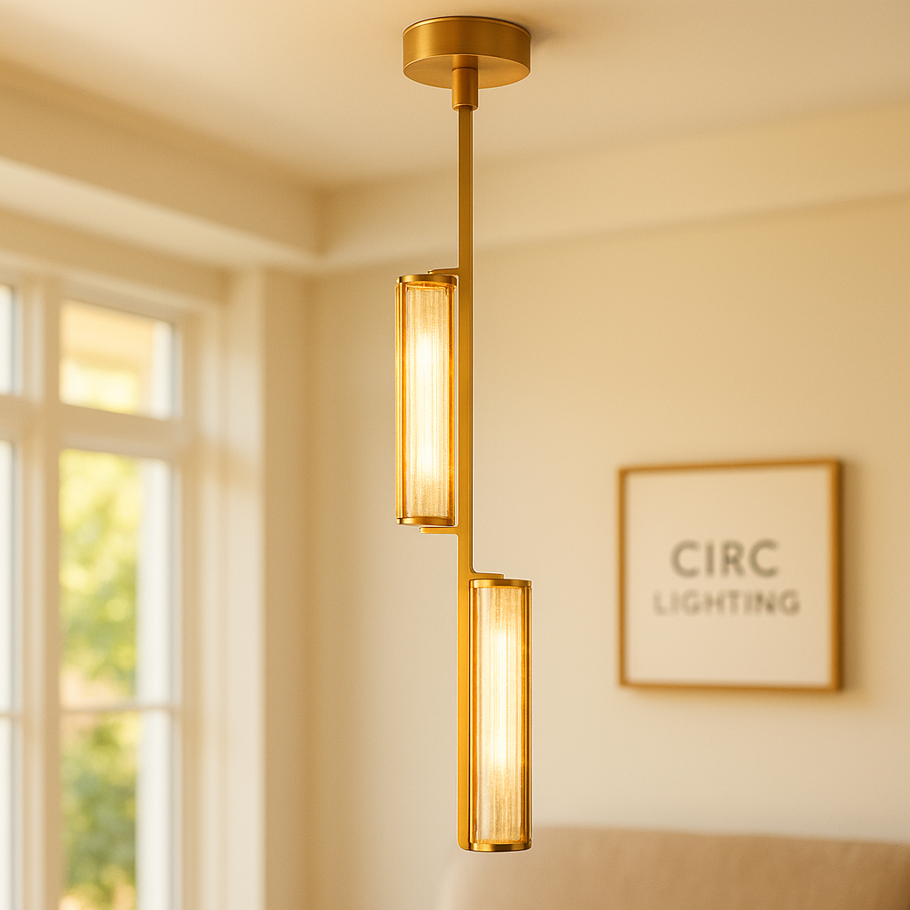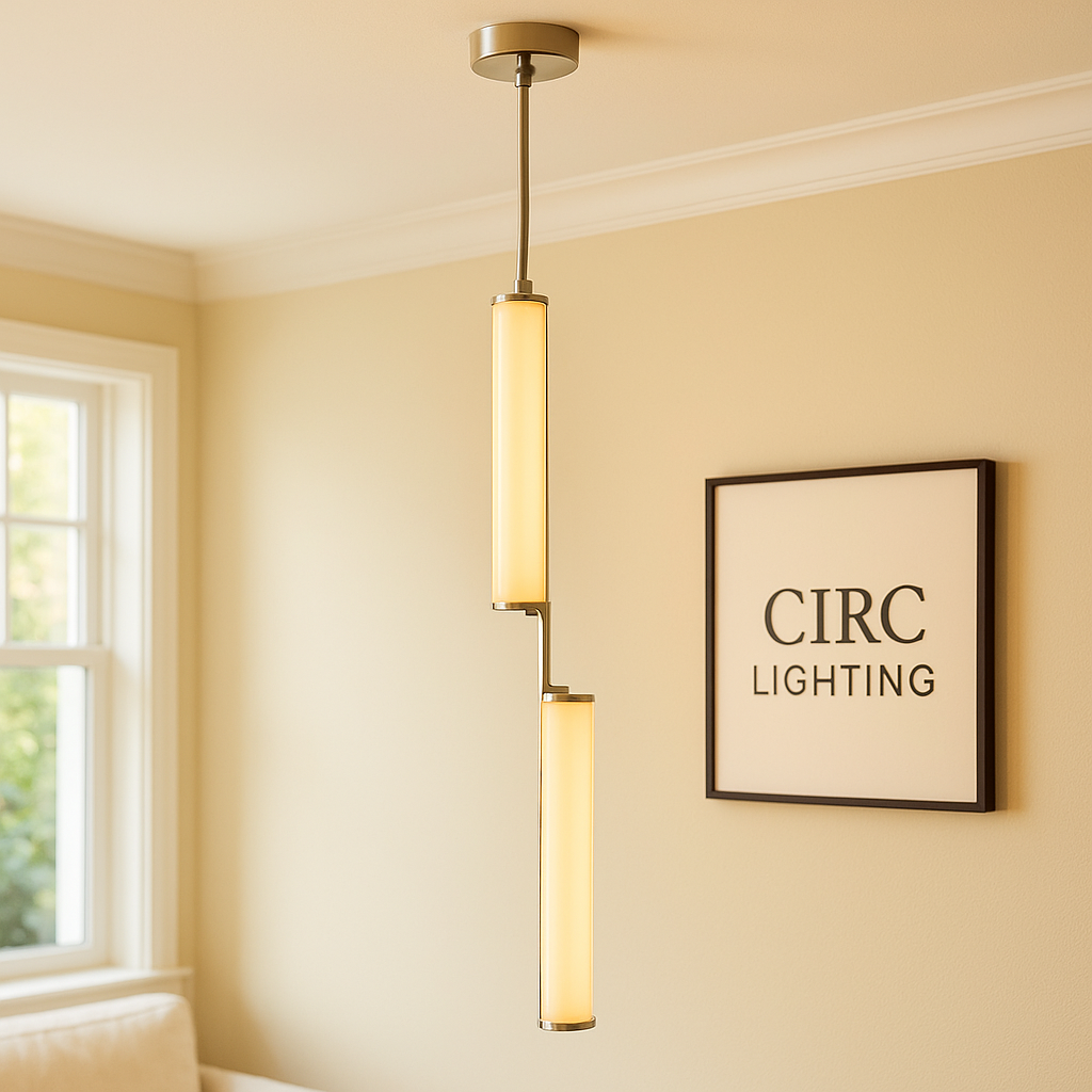 A sophisticated and modern Vintage Luxury Lighting Fixture, the CIRC Audubon Crystal Pendant is a striking vertical column of light and material. The fitting is meticulously handcrafted of brass, which securely holds two prominent prisms of hand-polished K9 crystal. The pendant features an integrated LED board that emits a warm, intimate light, making it ideal for dramatic groupings over kitchen islands, stairwells, or as a singular, refined statement piece.