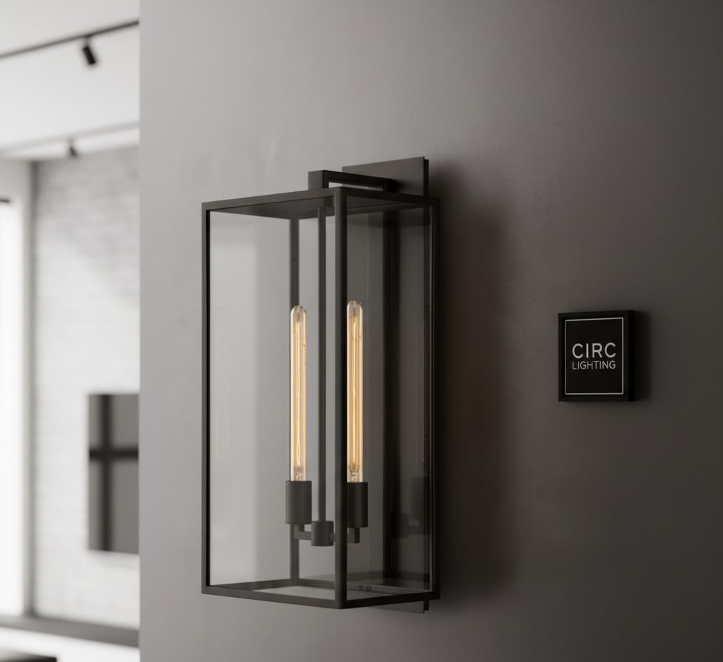 The CIRC Beckman Sconce 28" is a statement in architectural lighting, merging elegant craftsmanship with bold proportions. Framed in solid brass and enclosed with crystal-clear glass panels, it delivers structured illumination suited for grand entrances, covered patios, or sophisticated indoor applications.