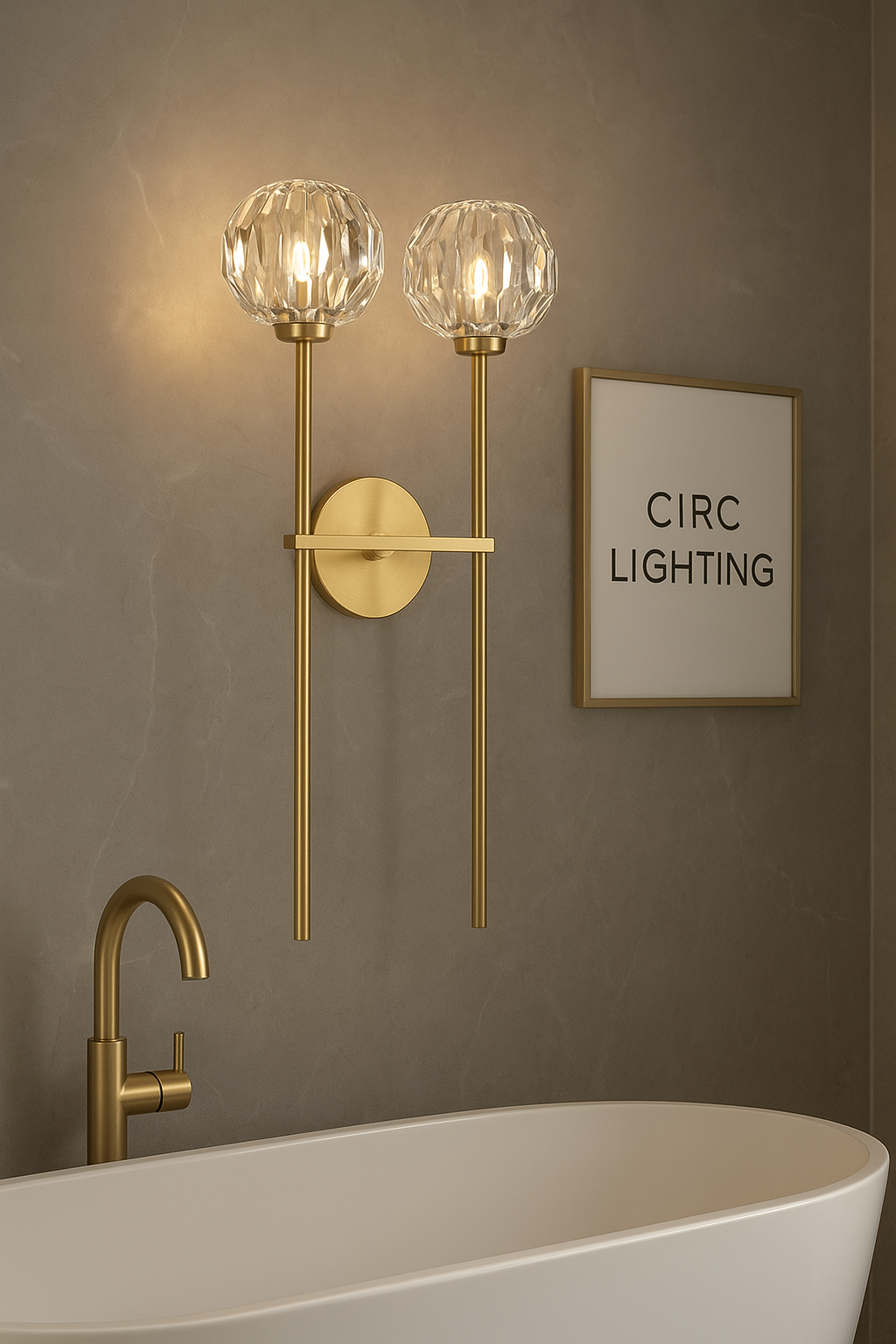 The CIRC Boule de Cristal Clear Glass Grand Double Sconce showcases the exquisite craftsmanship of solid brass and precision-cut K9 crystal. Each glass sphere is intricately faceted with hexagonal and pentagonal cuts, refracting light with dazzling clarity. Designed to embody refined sophistication, this double sconce brings radiant brilliance and timeless elegance to any interior.