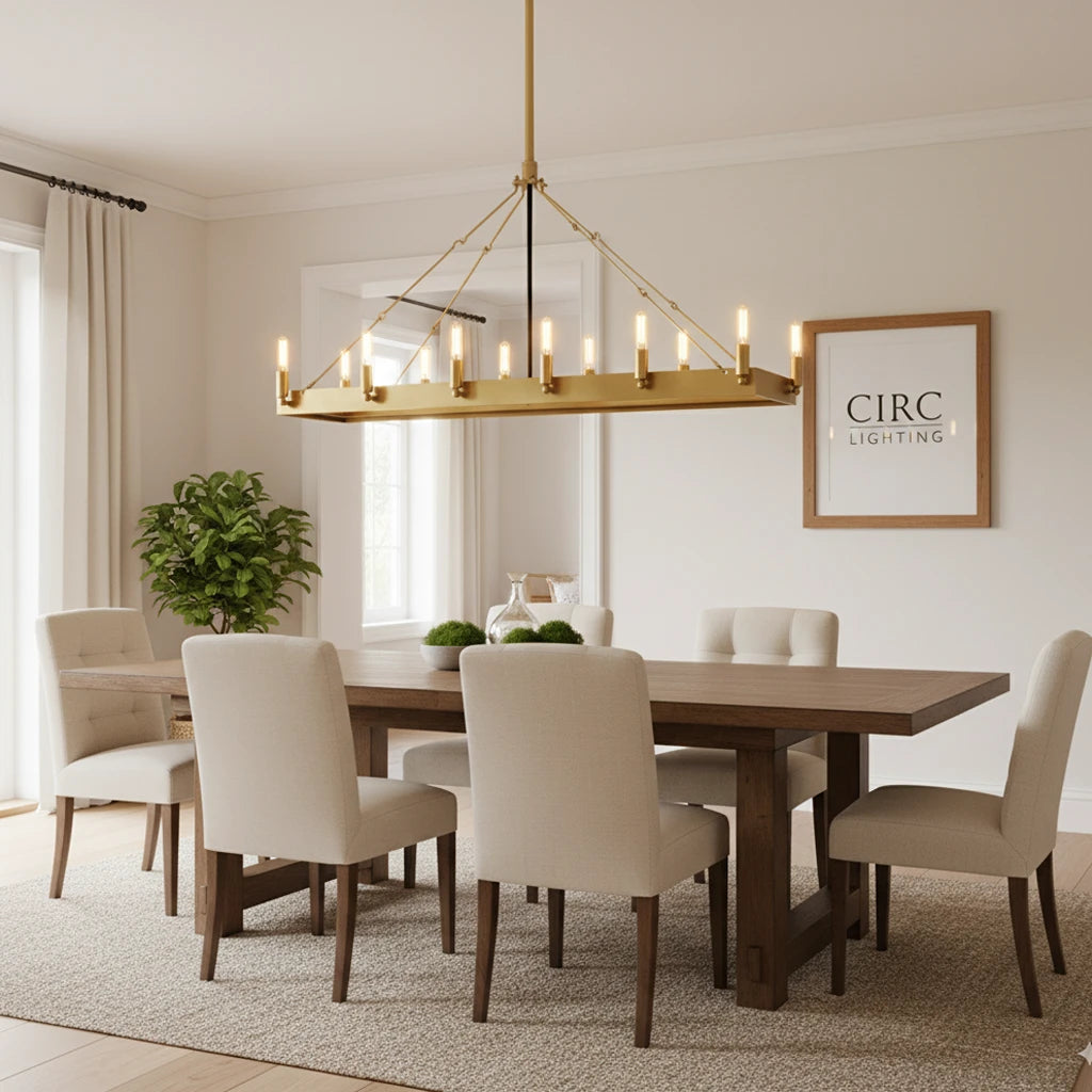 The CIRC Camino Vintage Filament Rectangular Chandelier 41" strikes the perfect balance between industrial edge and vintage charm. Designed with a hand-forged, bent angle-iron frame and lined with upraised vintage filament bulbs, this chandelier brings warmth and character to any kitchen island, dining table, or bar area. The sheet metal-wrapped sockets and textured cast ceiling plate add refined rustic detail, creating a bold yet elegant lighting statement.