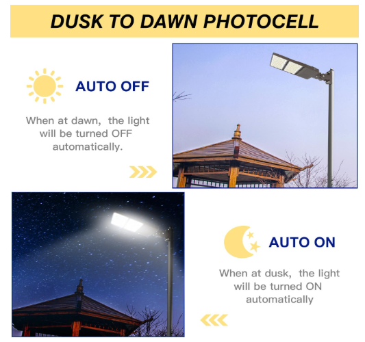 The integrated photocell sensor enables automatic on/off switching based on surrounding light levels. This smart control reduces manual operation, improves energy efficiency, and ensures consistent nighttime illumination for enhanced safety and security.