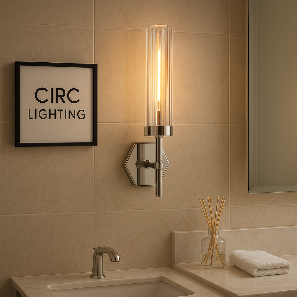 The CIRC Lambeth Hexagonal Grand Sconce reimagines geometric elegance on a grander scale, showcasing a hand-polished K9 crystal hexagonal shade framed in solid brass. Designed to capture and refract light with architectural precision, this striking fixture lends luminous sophistication to bathrooms, hallways, or dressing suites.