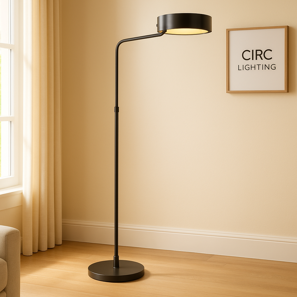 The CIRC Levi Task Floor Lamp blends timeless craftsmanship with precision adjustability. Handcrafted of solid brass, this elegant piece features a telescoping arm for customized height and reach, while the sleek, low-profile shade channels light exactly where it’s needed. Designed for refined workspaces or reading corners, its warm metallic finish and minimalist form bring sophistication and functionality together seamlessly.