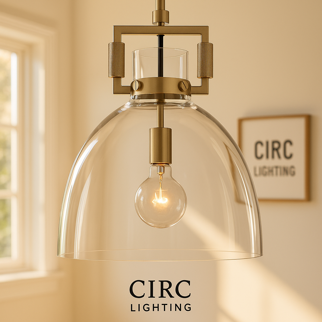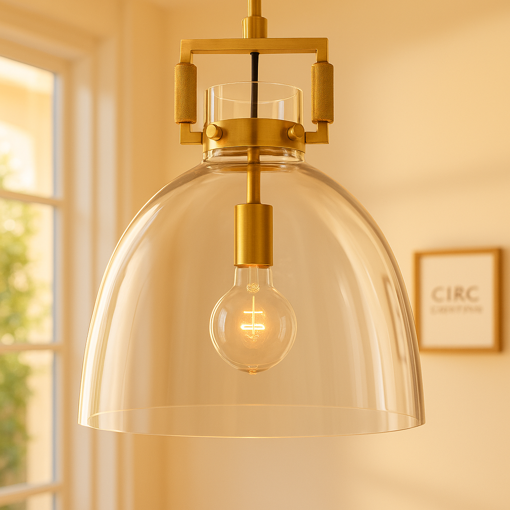 A functional yet elegant Vintage Luxury Lighting Fixture, the CIRC Machinist Glass Cloche Pendant brings together industrial-inspired design and artisanal craftsmanship. The frame material varies by finish: Lacquered Burnished Brass is made of solid brass, while Bronze and Polished Nickel finishes are solid steel. Each pendant showcases a finely mouth-blown glass shade in a classic cloche profile. Due to the handcrafted nature of the glass, subtle air bubbles or slight asymmetry are natural, confirming the uniqueness of every piece. With its Damp UL certification, vaulted ceiling compatibility, and adjustable rod segments, this pendant offers both versatility and sophistication across kitchens, bathrooms, and living spaces.