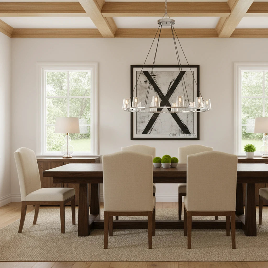 The CIRC Pauillac Round Chandelier 48" is a bold yet elegant centerpiece, showcasing a clean, contemporary silhouette with timeless versatility. Expertly crafted from solid brass and offered in Polished Nickel, Lacquered Burnished Brass, or a live Bronze finish that naturally patinas over time, this chandelier blends sophistication with durability. The hand-blown clear glass tapered shades diffuse light beautifully from twelve candelabra bulbs, filling your space with a warm, welcoming glow. Its adjustable rod system provides customizable hanging length, making it ideal for dining areas, living rooms, or grand entryways.