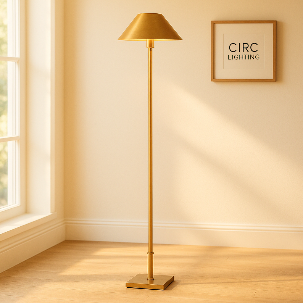 A simply designed, downsized, and elegantly executed Vintage Luxury Lighting Fixture, the CIRC Petite Candlestick Metal Shade Floor Lamp is crafted from steel and aluminum for a refined, lightweight look. Featuring a candlestick-style bulb holder, sheltered by a matching finished metal shade, this lamp provides focused, directional light. Ideal for task lighting or as a subtle accent, it brings a classic yet modern touch to dry interior locations.