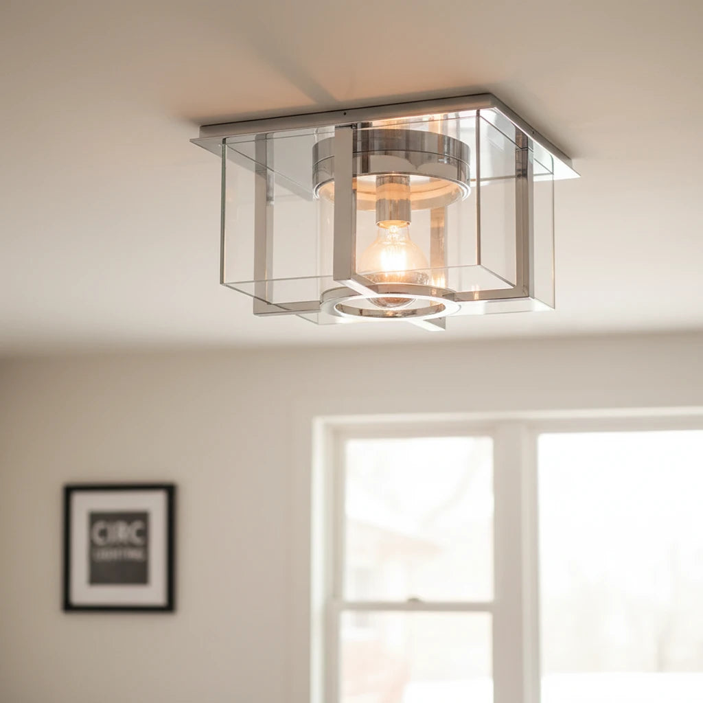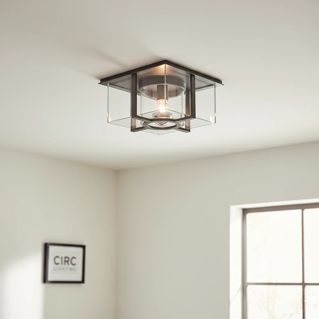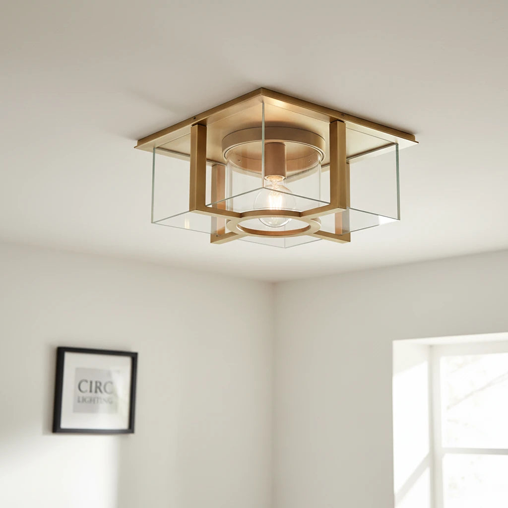 The CIRC Pétrus Square Flushmount brings refined geometry and artisan craftsmanship together in a timeless design. Handcrafted from solid brass with a clear glass outer shade, it includes both clear and frosted inner cylindrical shades for customizable diffusion. Ideal for bathrooms, hallways, or sheltered outdoor areas, its tailored silhouette and warm glow elevate any contemporary interior.