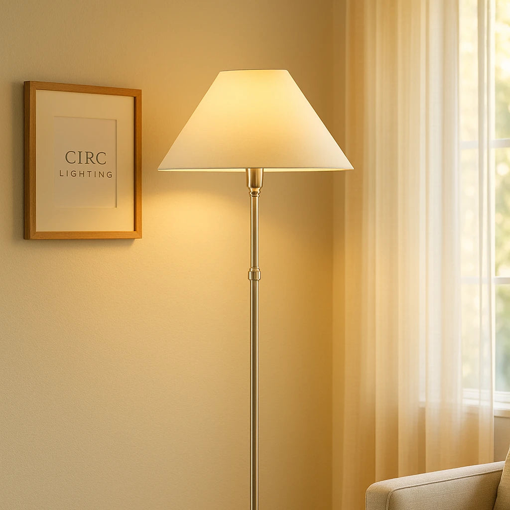 CIRC Pyramid Linen Shade Telescoping Floor Lamp