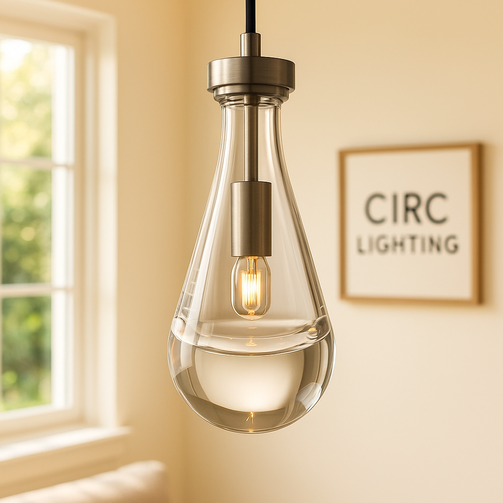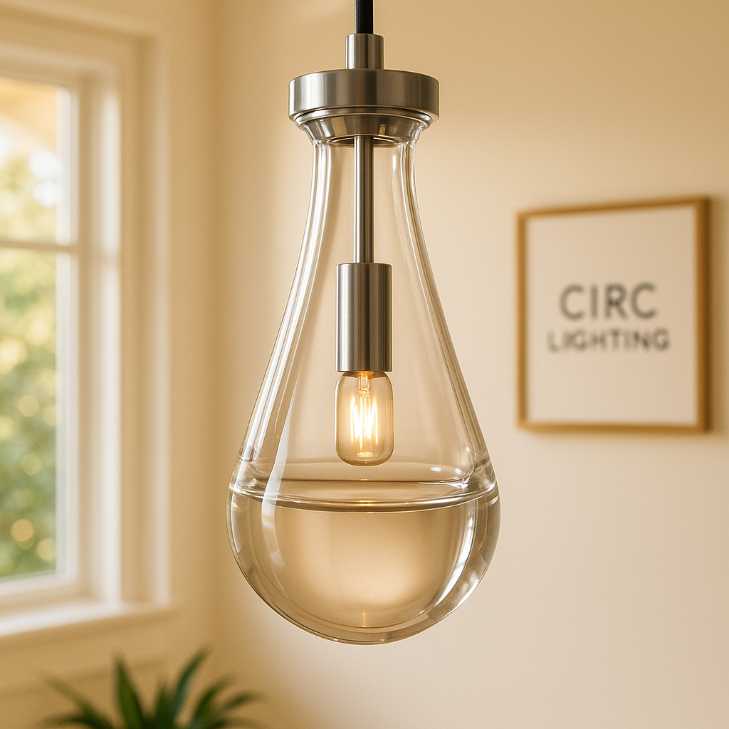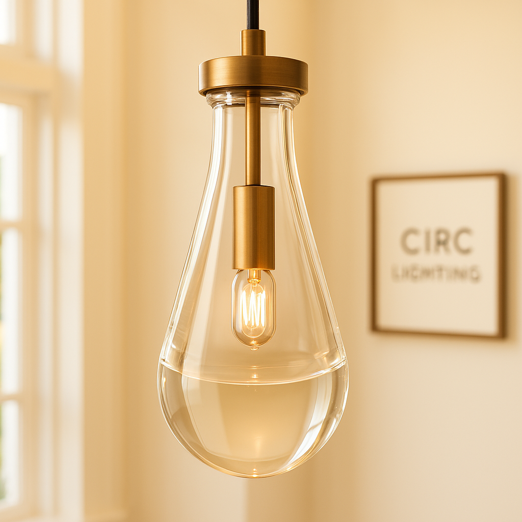 A unique and ethereal Vintage Luxury Lighting Fixture, the CIRC Rain Pendant captures the delicate beauty of water in solid form. Each pendant features a weighty, single raindrop-shaped shade, individually blown by a skilled artisan from solid glass. The fittings and canopy are crafted from solid brass, adding refined warmth to the design. Because each piece is handmade, small air bubbles or slight asymmetry are natural and enhance its artisanal character. With its exceptional 18-foot maximum hanging height, the Rain Pendant is an extraordinary statement piece for stairwells, galleries, or double-height entryways.