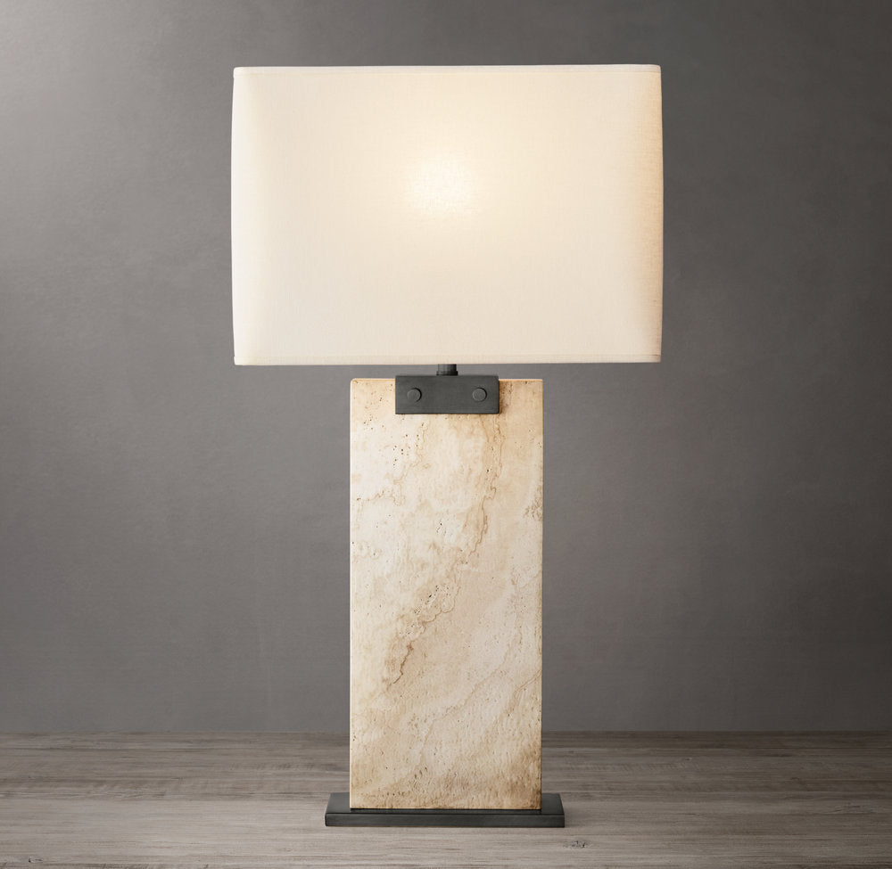 CIRC Rectangular Column Travertine Table Lamp