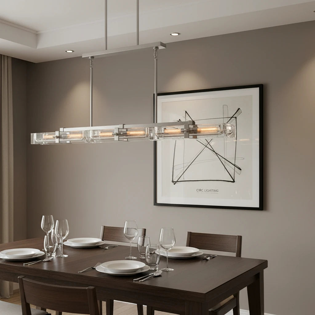 The CIRC Savile Linear Chandelier 72" is a striking study in refined geometry, meticulously handcrafted from sand-cast brass and brilliant K9 glass. Renowned for its clarity and use in optical lenses and prisms, K9 crystal glass delivers a dazzling sparkle that transforms this elongated chandelier into a bold statement piece. The pairing of solid, hand-finished brass with the radiant purity of crystal creates a timeless yet contemporary aesthetic, ideal for illuminating a grand dining table, kitchen island, or luxury entertaining space.