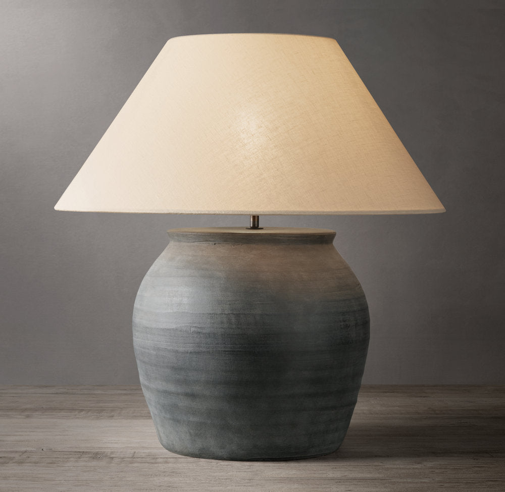 The Terra-Cotta Olive Jar Table Lamp channels old-world charm through its hand-finished, aged patina—bringing warmth, texture, and artisanal character to any interior.