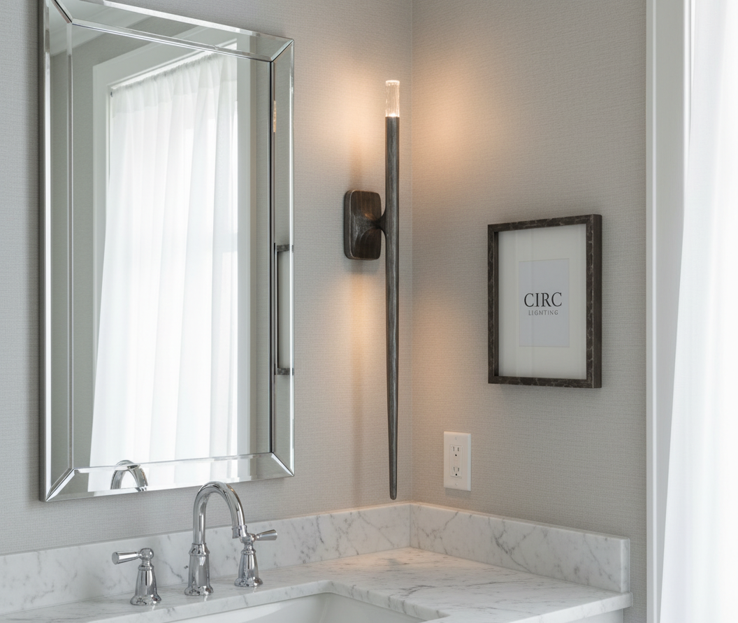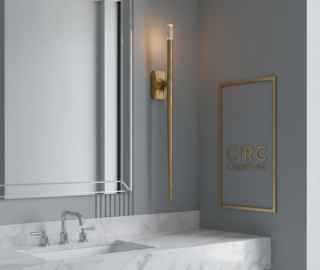 The CIRC Thaddeus Grand Sconce showcases masterful metalwork and artisanal craftsmanship, merging solid materials with refined detailing. Each piece is individually forged and hammered by hand, creating a distinctive texture that reflects both skill and artistry. The faceted, cast-glass cover complements the metal’s finish, adding a subtle brilliance ideal for refined interiors such as bathrooms or sheltered outdoor areas.