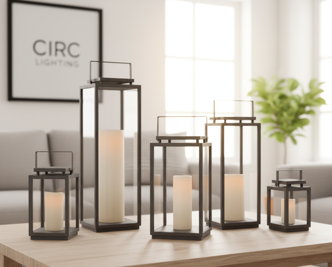 The CIRC Treviso Lantern reflects timeless craftsmanship and refined architectural balance. Constructed from durable powdercoated aluminum, its structured frame and clear glass panes create a crisp, sophisticated presence. Designed for both indoor and outdoor environments, the Treviso brings warmth and elegance to terraces, entryways, and covered patios — a versatile choice for modern or traditional settings.